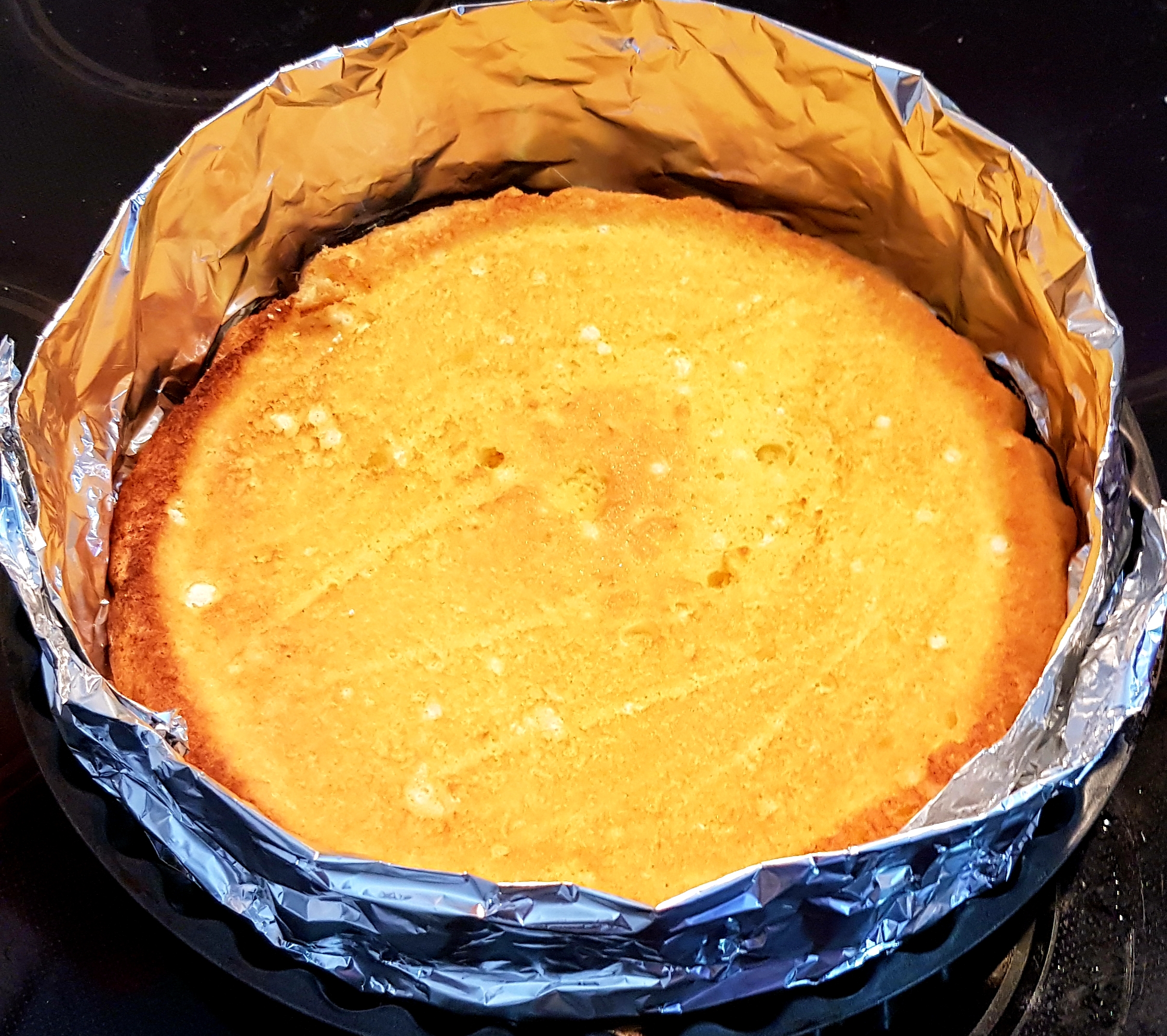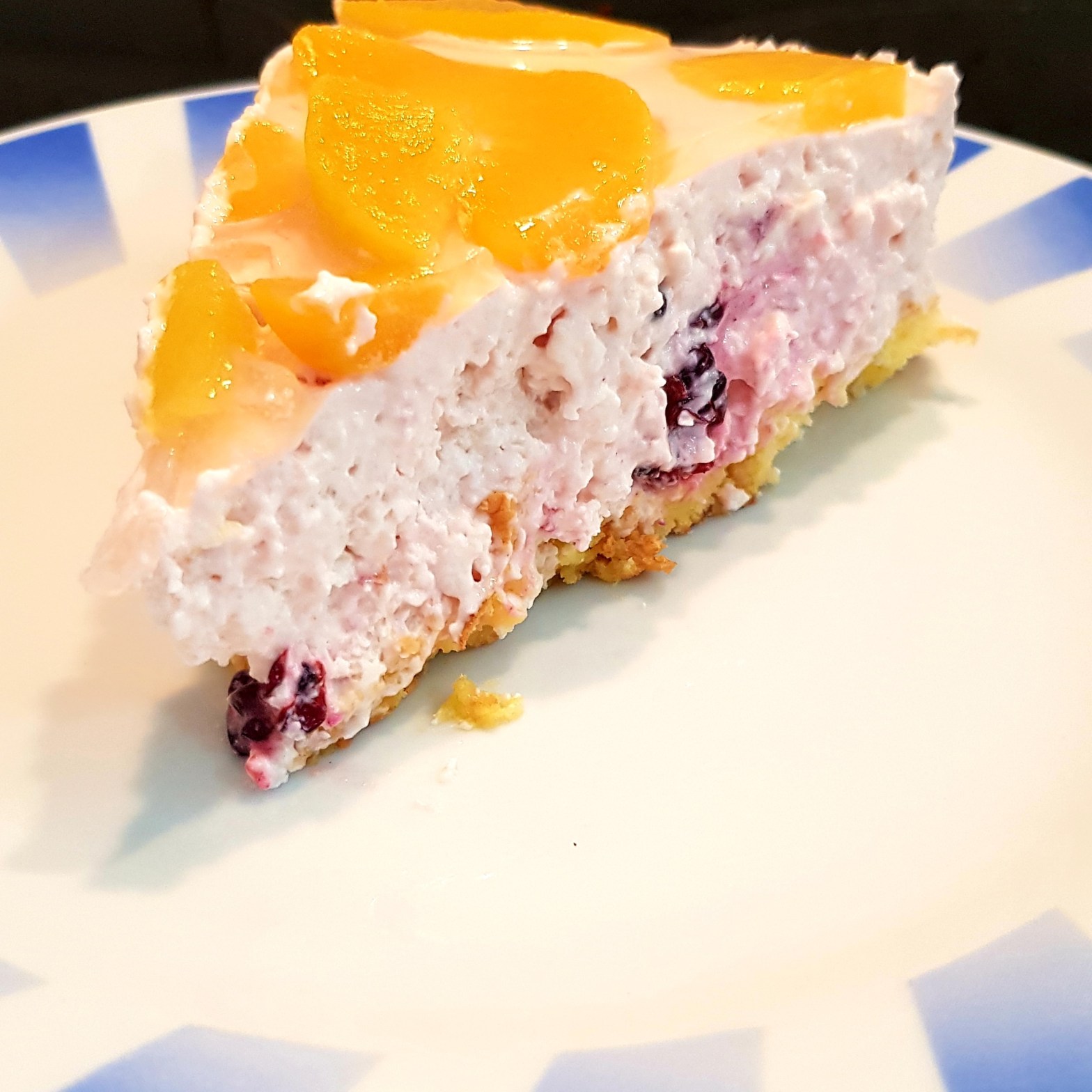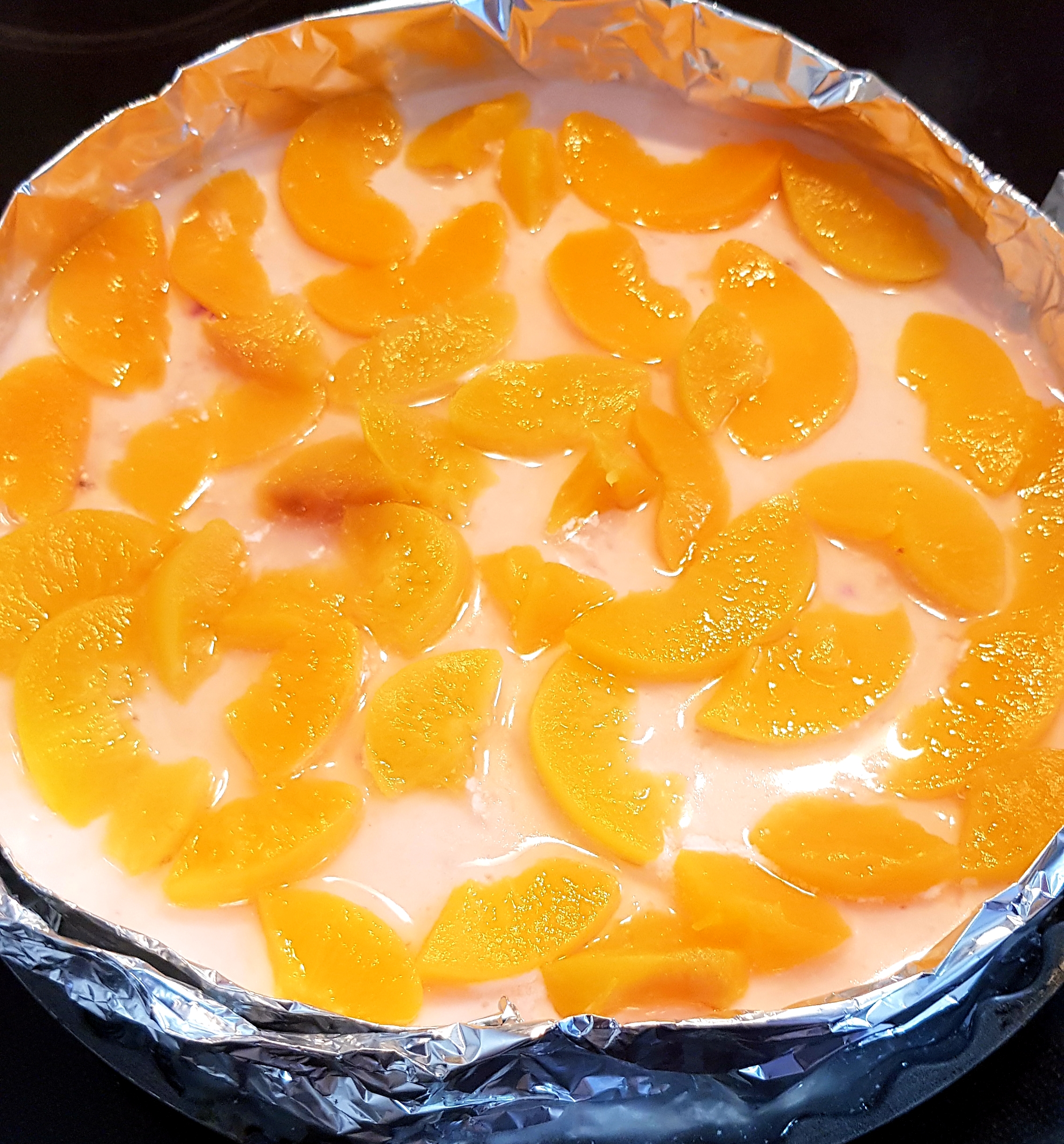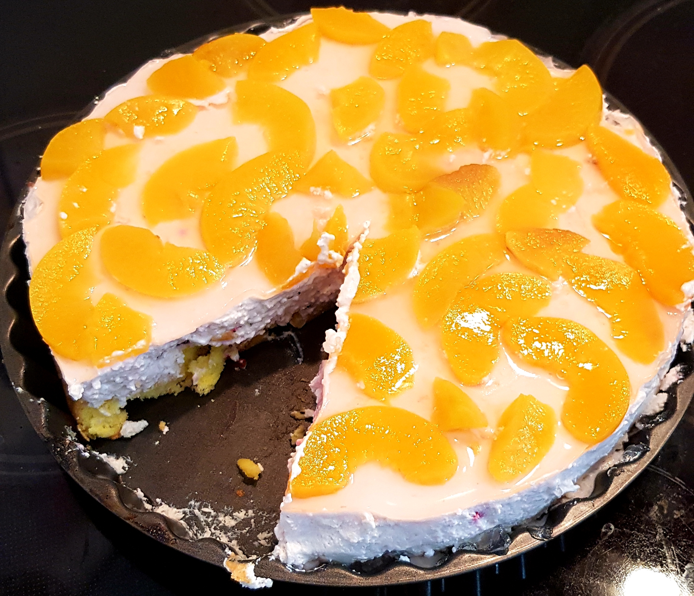 Najprej stepemo sladko smetano, ter stepeno damo v hladilnik. Nato namočimo želatino v vodo in damo limonin in pomarančni sok na štedilnik, da se segreje. Ko skoraj zavre odstavimo in dodamo želatino, da se stopi. Pustimo, da se ohladi, vmes pa vse ostale sestavine zmešamo skupaj. Nato par žlic skutine zmesi damo v kozico z želatino, zato, da malo ohladimo želatino, da ni šoka, ki bi nastal, če stresemo želatino direkt v skuto in bi lahko nastale grudice.Nato stresemo vse skupaj v skutin nadev, dodamo sladko smetano in dobro premešamo. Nadev stresemo na biskvit, najbolje je če imamo model za torto. Vse skupaj pa damo za 2 uri v hladilnik. Po 2 urah na vrh nadeva narežemo marelice iz kompota, lahko tudi sveže, in v tekočino kompota, ki smo ga zavreli, dodamo 2 lista želatine. Tekočino nato ohladimo in prelijemo čez narezane marelice. Pustimo čez noč v hladilniku.