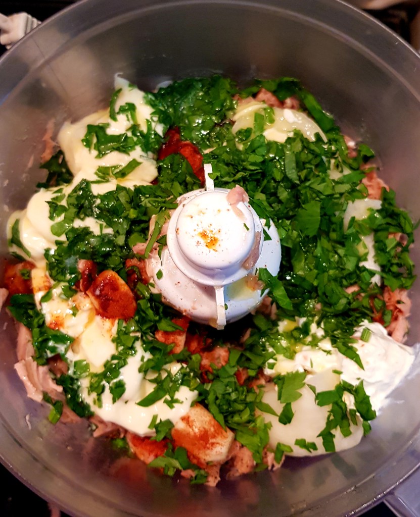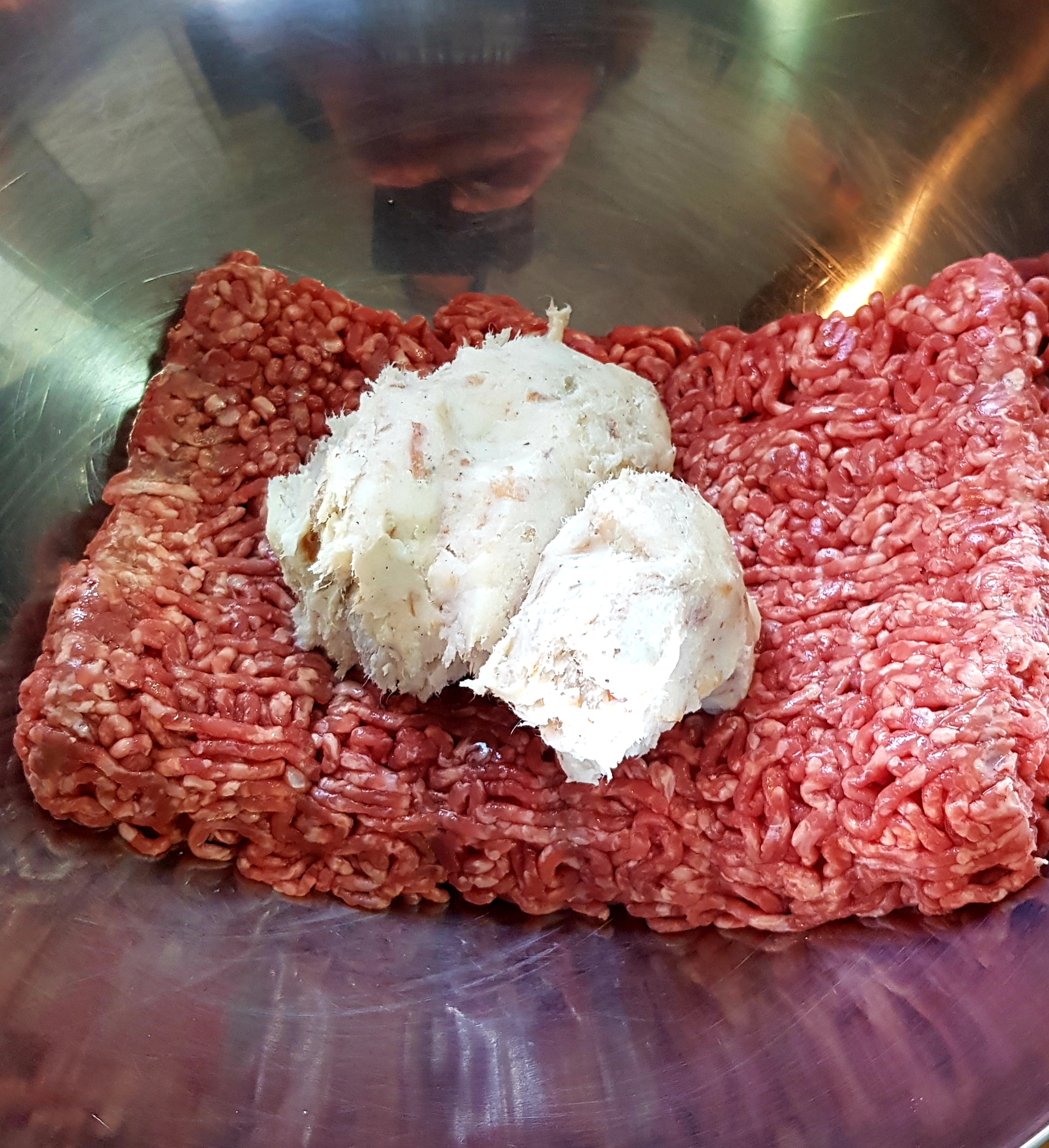Vse skupaj dobro premešamo, da dobimo maso za burger.