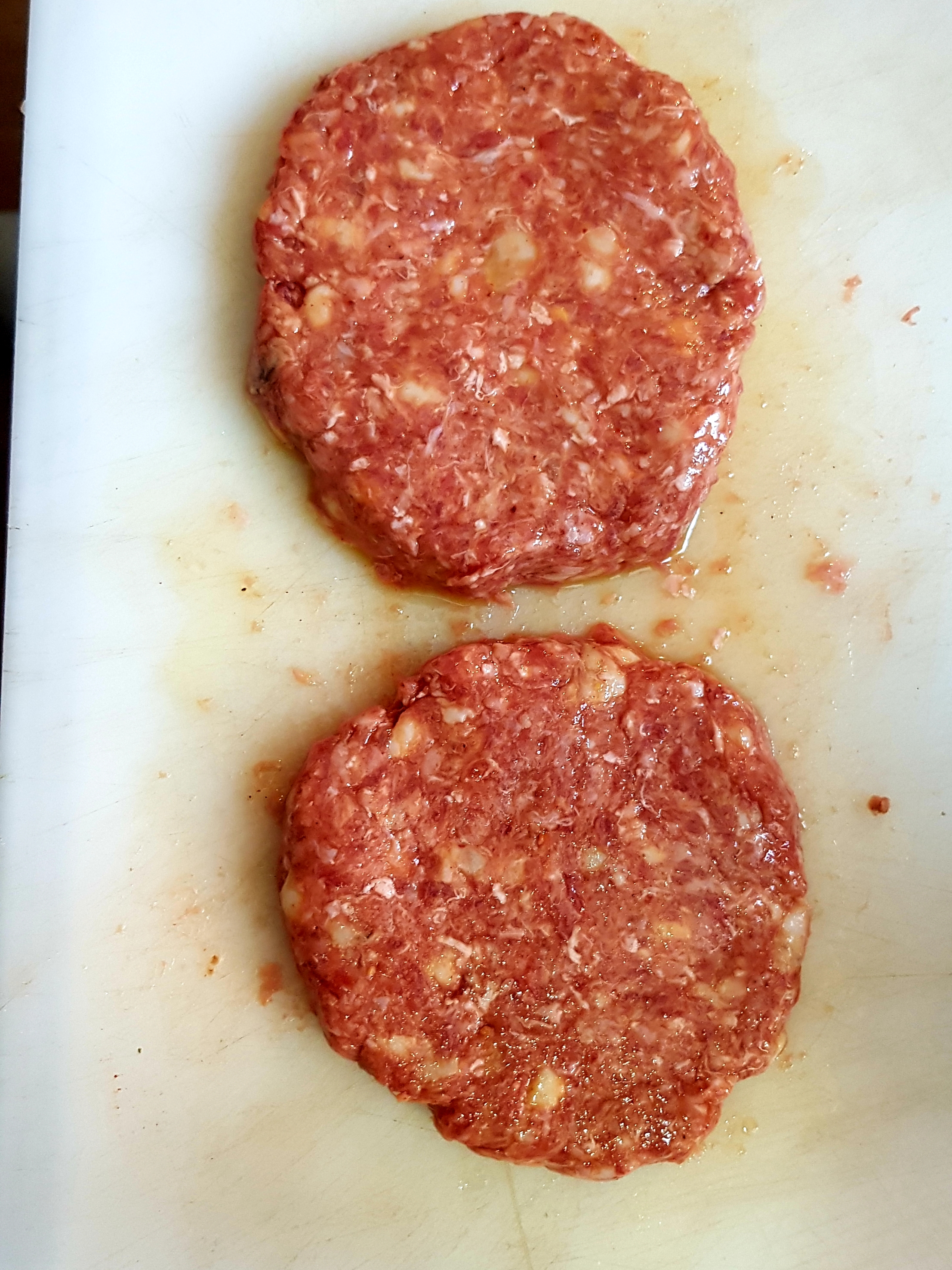 Ko imamo bombetke pečene, jih pustimo počivat, vmes smo naredili maso za burgerje, sedaj oblikujemo burgerje in jih popečemo na olju. Ko so burgerji pečeni, jih vzamemo iz ponvice in popečemo še bombetke, ki smo jih prerezali na pol. Nato jih zložimo na krožnik in damo najprej solato, nato paradižnik, čebulo, papriko, potem meso, na meso sir, nato slanino, lahko še jajce… sestavin je neomejeno, vsak si lahko naredi po želji. Na vrh pa položimo zgornji del bombetke. Omake lahko naredite po želji, jaz sem naredil osnovno iz majoneze in ketchupa.