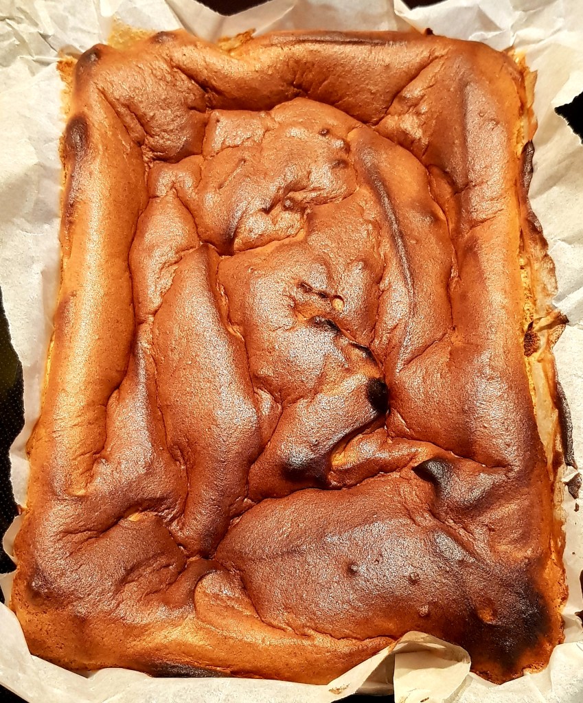 Rumenjake ločimo od beljakov. Stepemo trd sneg v katerega smo na 3/4 mešanja dodali sladkor in vanilij. Mešamo do konca, nato pa na rahlo vmešamo rumenjake, moko in pecilni. Stresemo v pekač, v katerega smo prej dali peki papir. Biskvit pečemo na 180°C 25 minut.